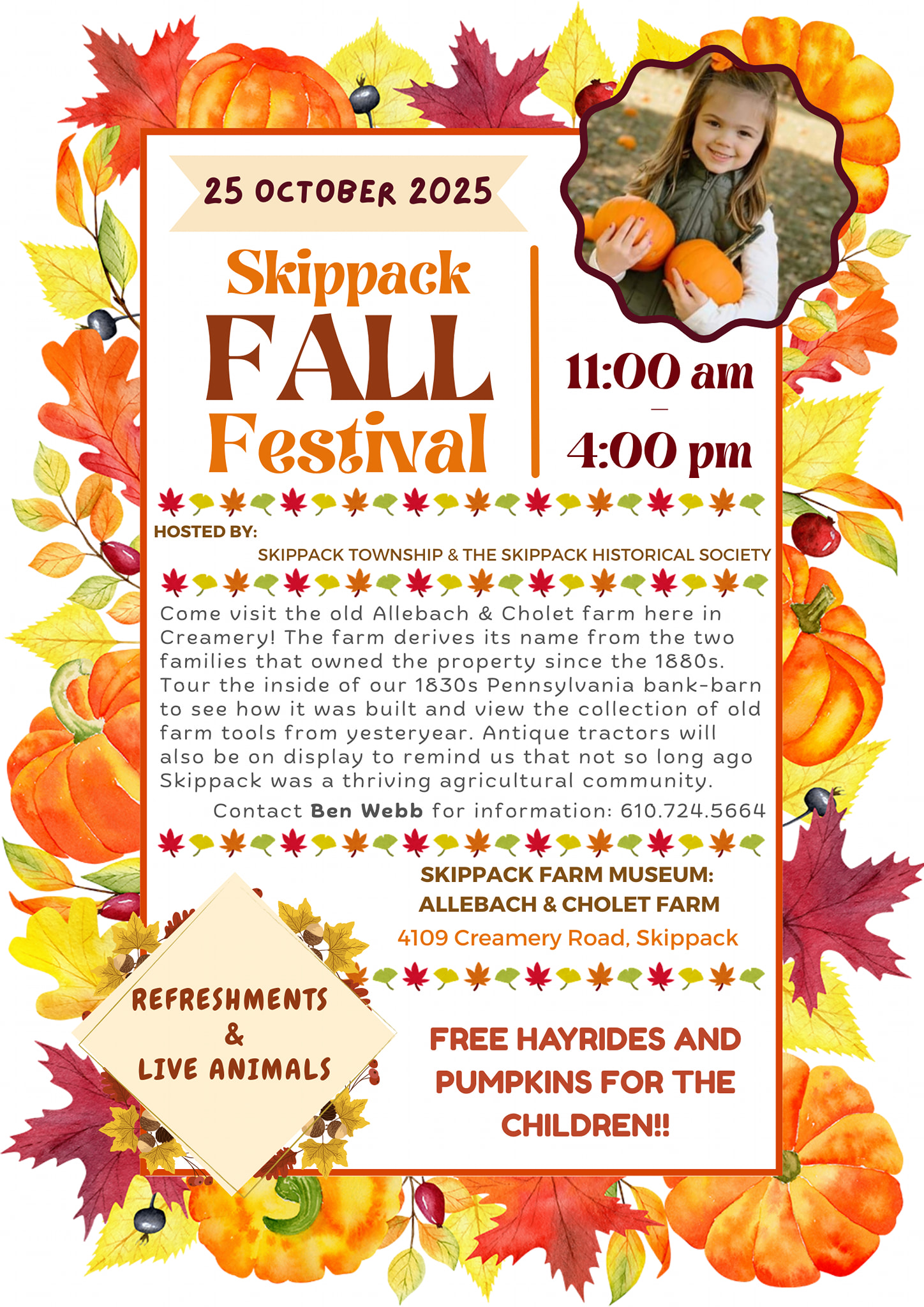 The Skippack Historical Society is a non-profit organization formed in 1967 for the purpose of researching and documenting the many historical sites and rich history of the Skippack Valley, the site of the second inland settlement of the Pennsylvania German people.